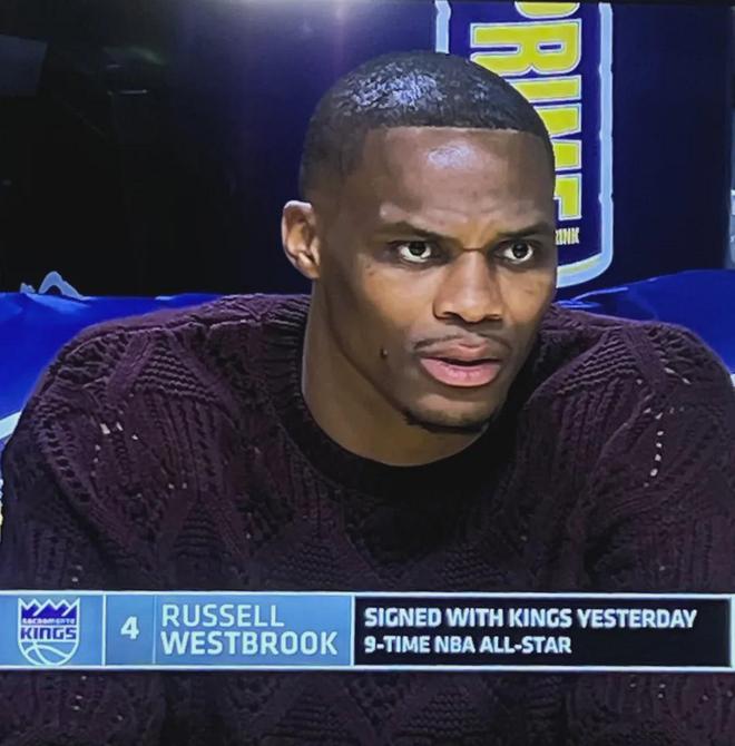 威少现场观战了新东家国王117-116险胜老东家湖人的比赛,转播方介绍他的屏幕打出9届全明星给予尊重。